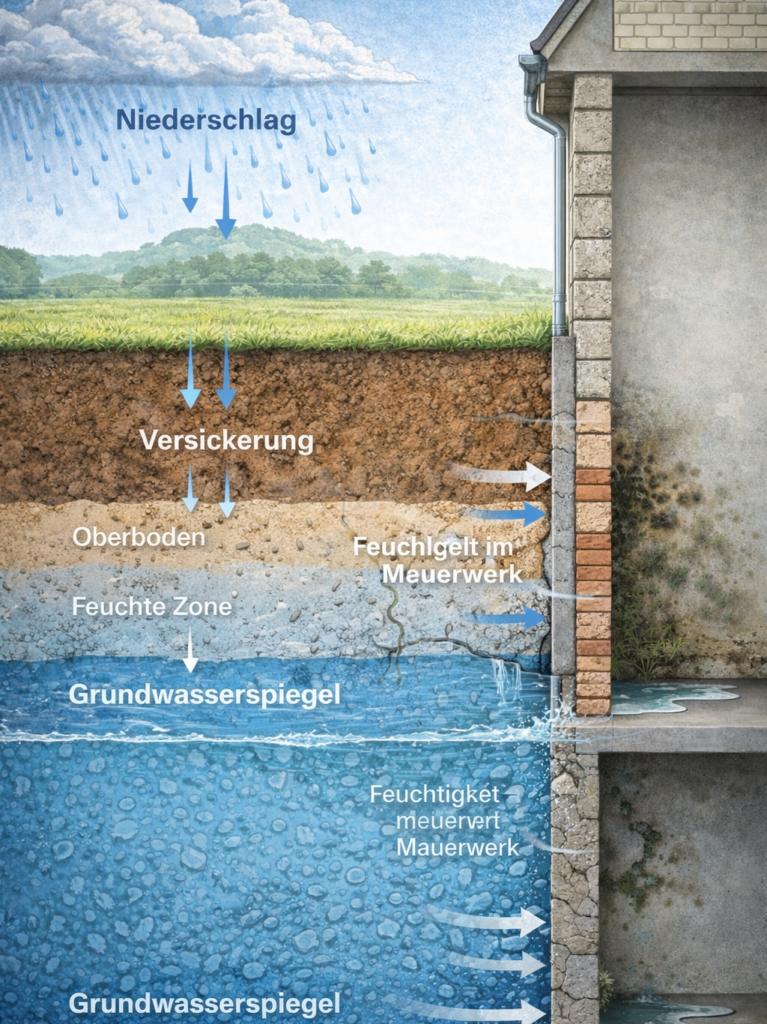 Aufsteigende Feuchtigkeit im Gebäude – Ursachen und langfristige Schäden